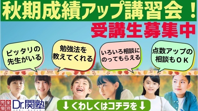 もし、今まで塾に通っていなかったり、他の塾でなかなか成績が伸び悩んでいるなら、ぜひ当塾の「秋期成績アップ講習会」にご参加ください。当塾では、各学年のカリキュラムに合わせた質の高い指導で、一人ひとりの「わかる!」を徹底サポートします。この秋、私たちと一緒に、確かな学力アップを目指し、次のステップへと踏み出しましょう!